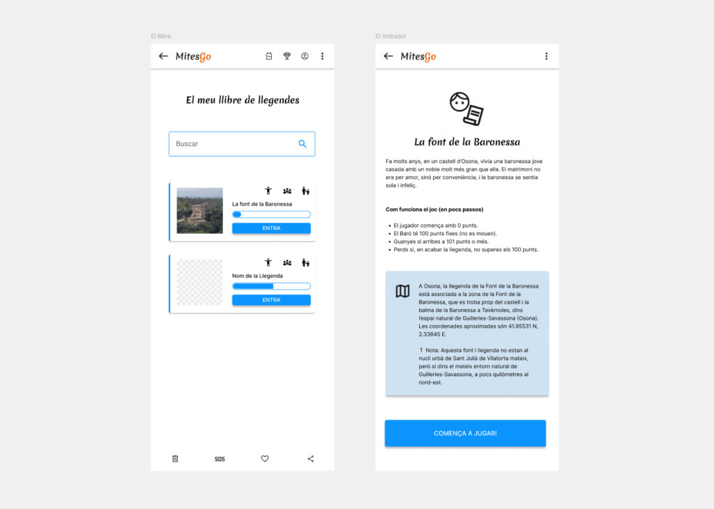 Els apartats previstos inicialment: es va tenir en compte Pokémon Go, però es simplifica el sistema de joc. L’objectiu serà descobrir llegendes a través d’un sistema tipus Quo Vadis de pistes, combinat amb un sistema de punts per resoldre reptes com: derrotar un monstre, trencar una maledicció, resoldre un enigma o ajudar l’heroi o heroïna portant un objecte.